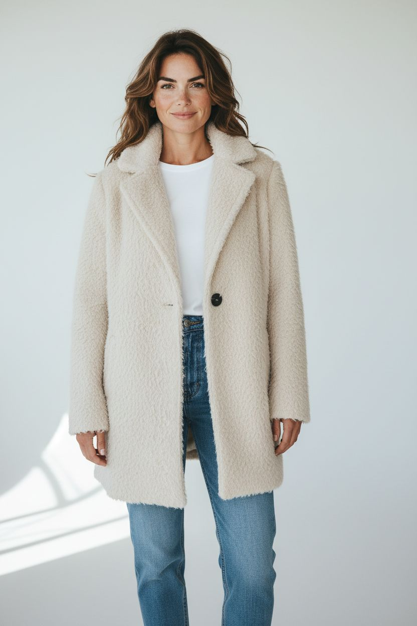 Abrigo paño efecto peludo talla única equivalente de 36 hasta 44.